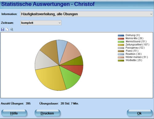 Zwei weitere Ansichten des Statistik-Moduls geben Ihnen einen Überblick darüber, wie oft und wie lange Sie mit jeder Übung trainiert haben.