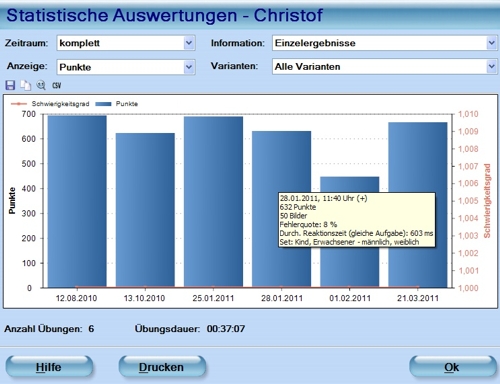 Übungen, die mehrere Übungsvarianten bieten, können für jede Variante getrennt ausgewertet werden.