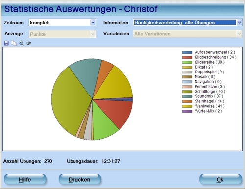Zwei weitere Ansichten des Statistik-Moduls geben Ihnen einen Überblick darüber, wie oft und wie lange Sie mit jeder Übung trainiert haben.
