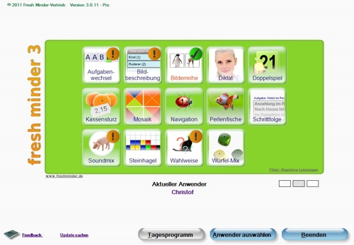 markiert Fresh Minder alle zum Tagesprogramm gehörenden Übungen mit