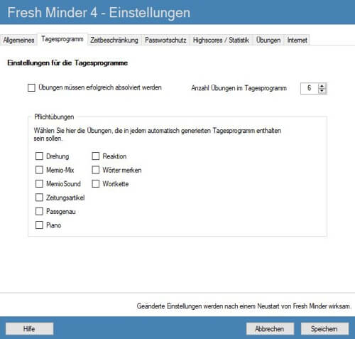 Tagesprogramm besteht und welche Übungen in jedem automatisch erzeugten