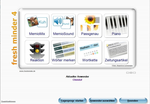 starten Sie die einzelnen Übungen, wählen einen anderen Anwender aus
